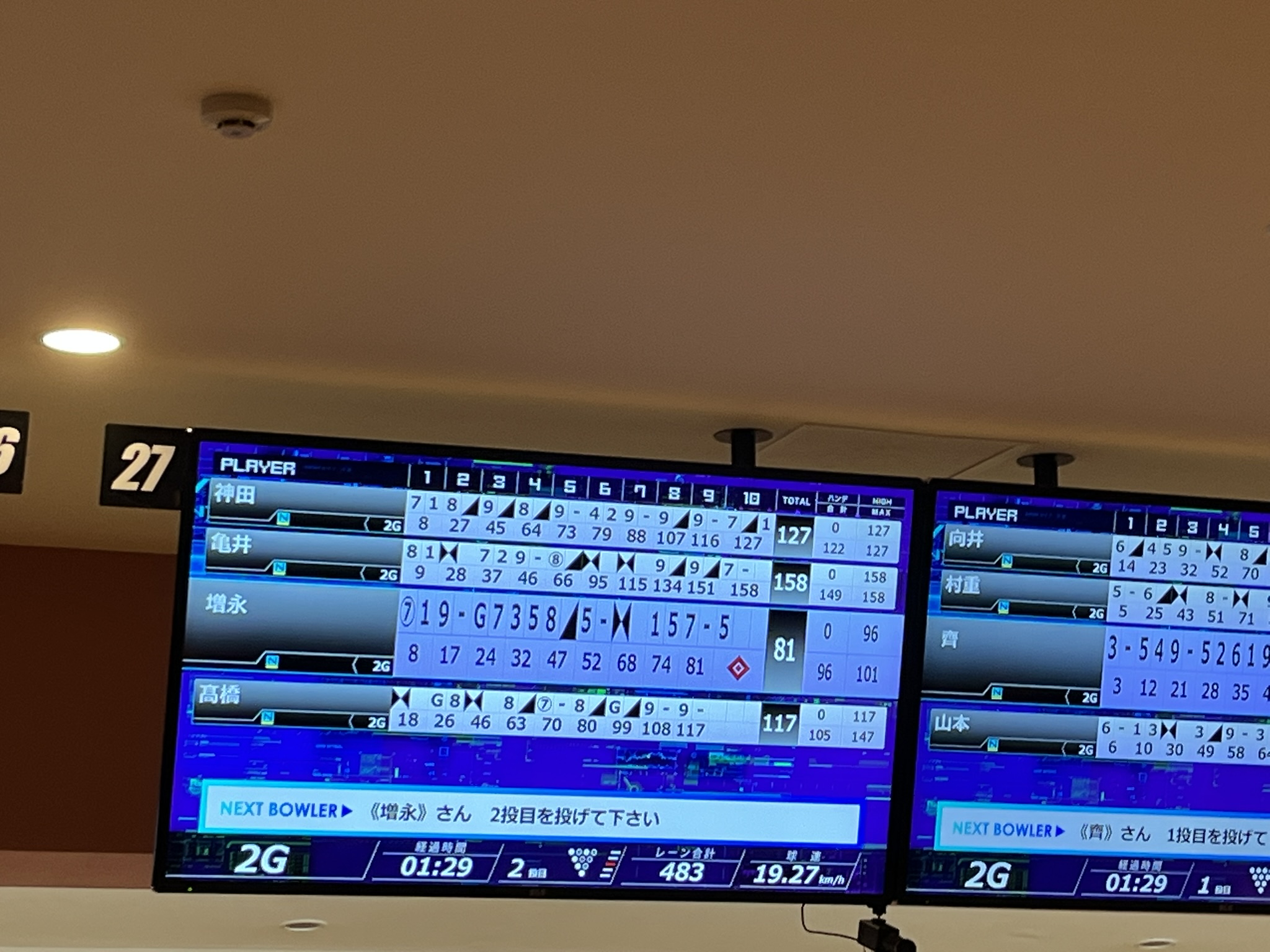 今年のボウリング大会は、2ゲーム目でフォース(4連続ストライク)を
