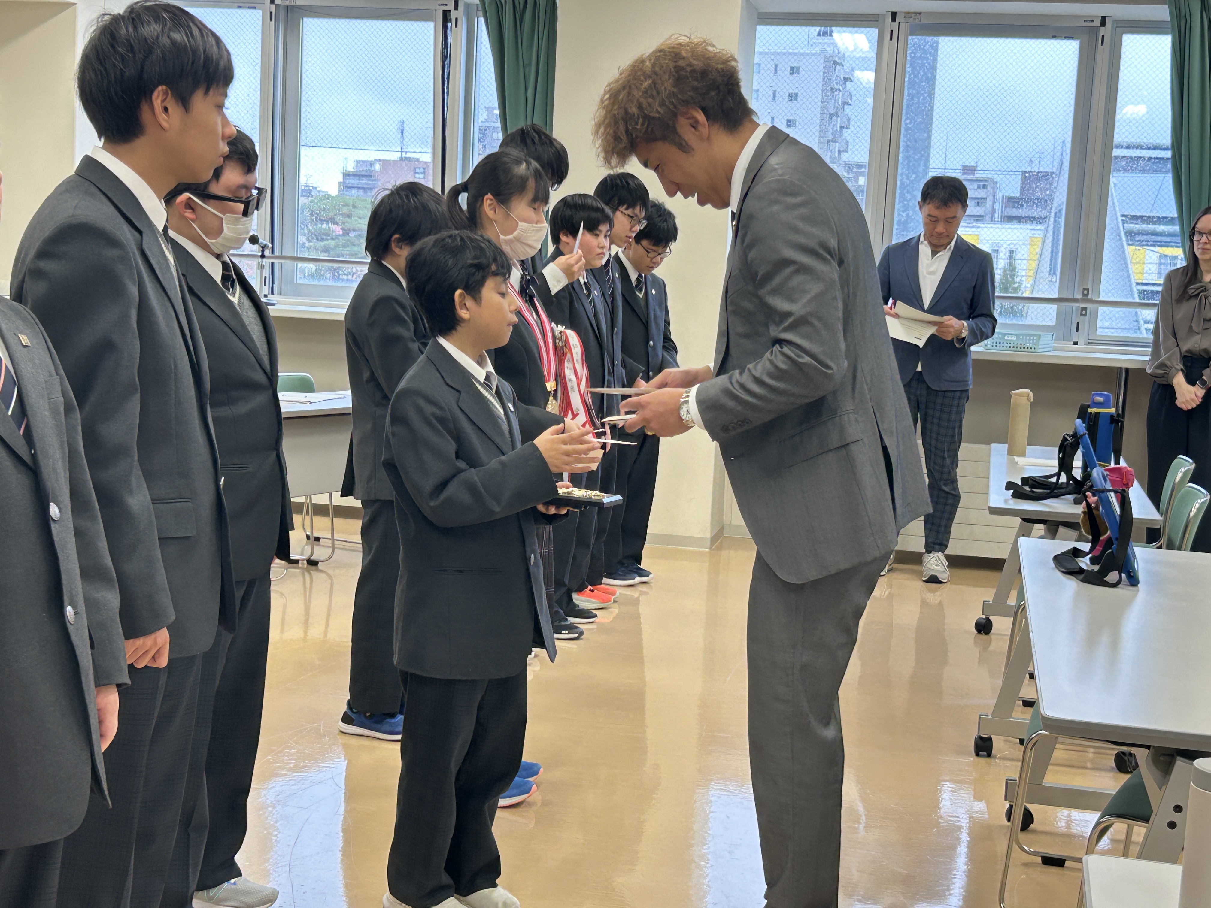 最優秀賞の生徒さんに優勝カップを、「札幌アカシアライオンズクラ